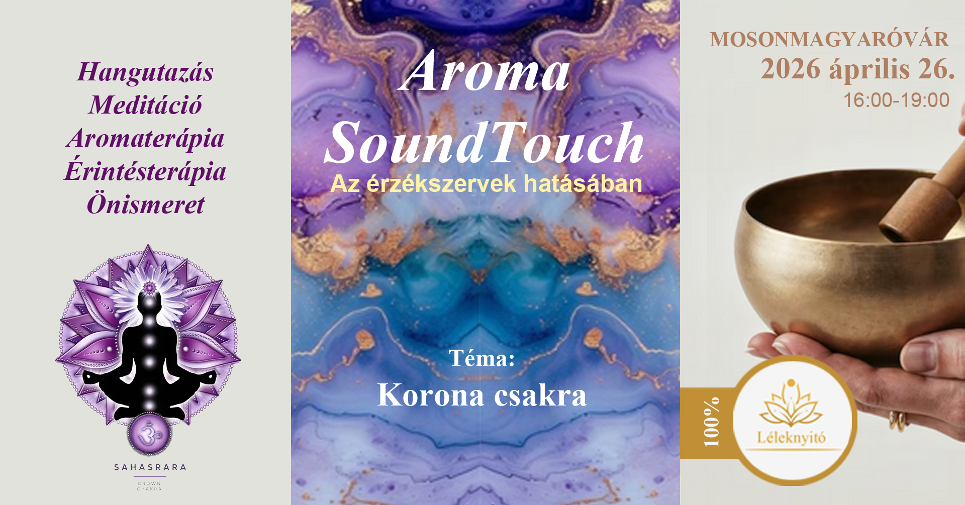 2026 januárjában folytatódik a közkedvelt Aroma Sound Touch önismereti meditációs élmény sorozatunk a csakrák harmonizálásának útján.